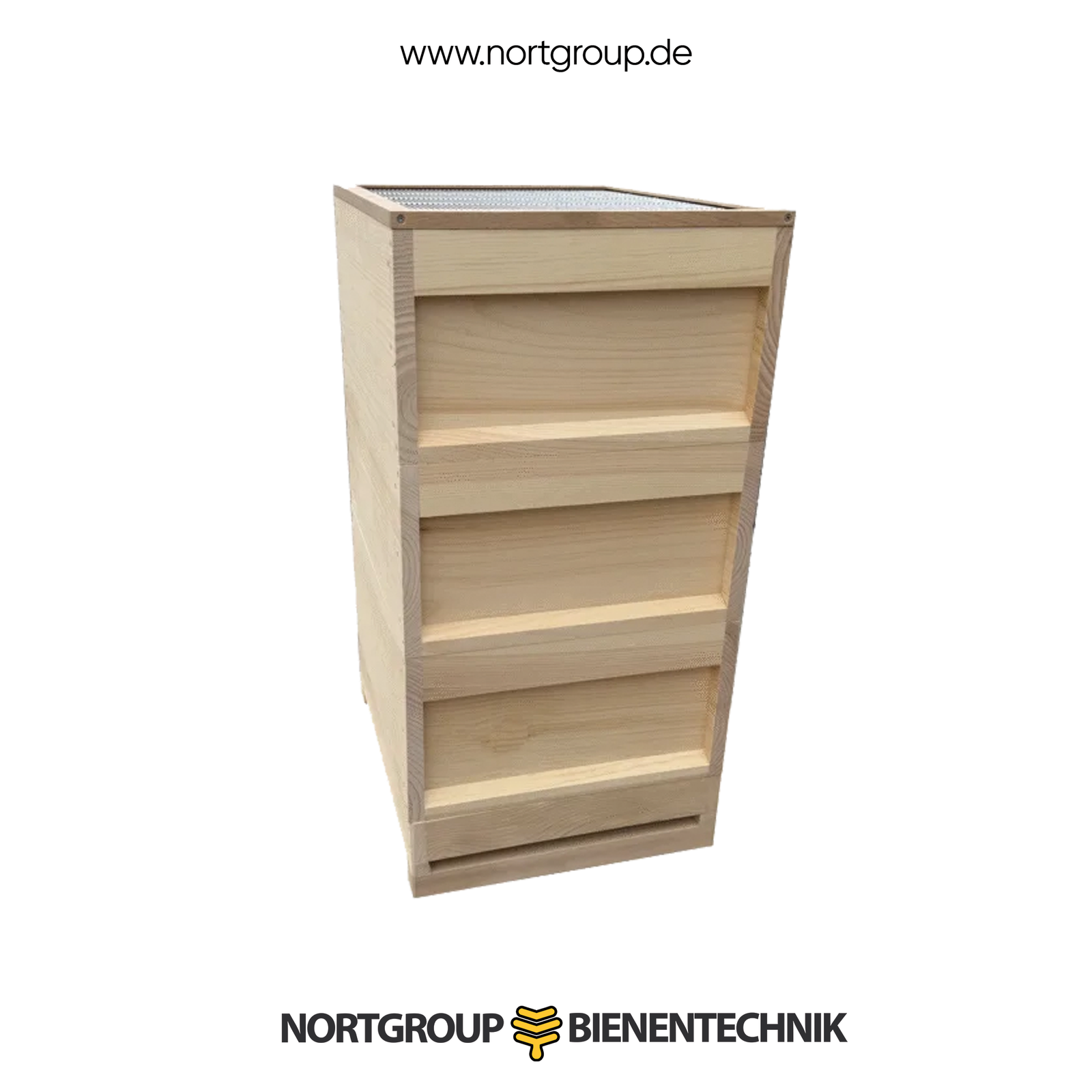 • Lieferumfang: 1x Zander Hochboden + Fluglochkeil, 3x Zander Ganzzargen für je 10 Zanderrähmchen, 1x Zander Absperrgitter, , 30x Zander Rähmchen (Optional)